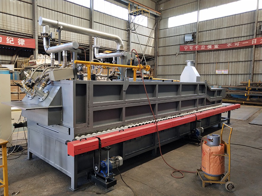 天然氣輥道窯是連續(xù)燒成的窯爐,以轉(zhuǎn)動(dòng)的輥?zhàn)幼鳛榕黧w運(yùn)載工具的隧道窯。坯件、制件等放置在許多條間隔很密的水平耐火輥上,靠輥?zhàn)拥霓D(zhuǎn)動(dòng)使陶瓷從窯頭傳送到窯尾,其加熱方式采用微波快速加熱,故而稱為微波輥道窯。